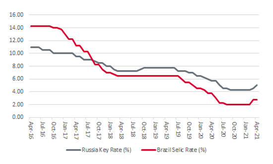 “Interest rate increases in Brazil and Russia caught markets by surprise, especially as they were both overtly designed to combat inflation.”