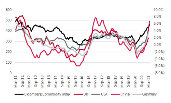 Economists are starting to fret. Usually, price rises start with commodity prices first, then they seep into factory gate (or producer) prices as companies see their input costs rise. You then get those very same firms jacking up their prices to preserve margins and that’s when consumers start to feel the pinch. It is not hard to make the case that the first two phases may already be underway, even if headline consumer price indices remain relatively subdued.