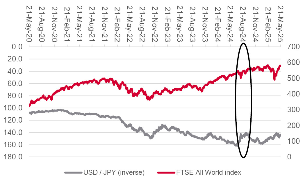 Investors may also remember how an unexpected bout of yen strength was offered as one potential explanation for last August’s (short-lived) stock market stumble.