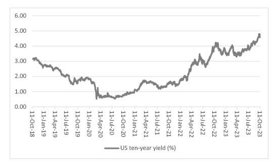 US ten-year yields reached a sixteen-year high before the war in Gaza