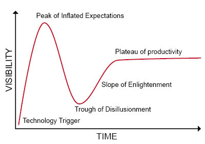 Any new technology tends to go through the same life cycle. The idea emerges, with investors getting excited and reaching a level of inflated expectations. As the complications of implementing the idea arise, such as data protection or commercial viability, disillusionment often follows. However, these are often ironed out before the idea comes into fruition and turns a profit.