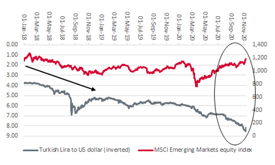 It may seem churlish to worry, given the enthusiastic response the markets are giving to news of the Phase III COVID-19 vaccine trial by Pfizer (PFE:NYSE) and BioNTech, but advisers and clients may need to keep an eye on Turkey once more.