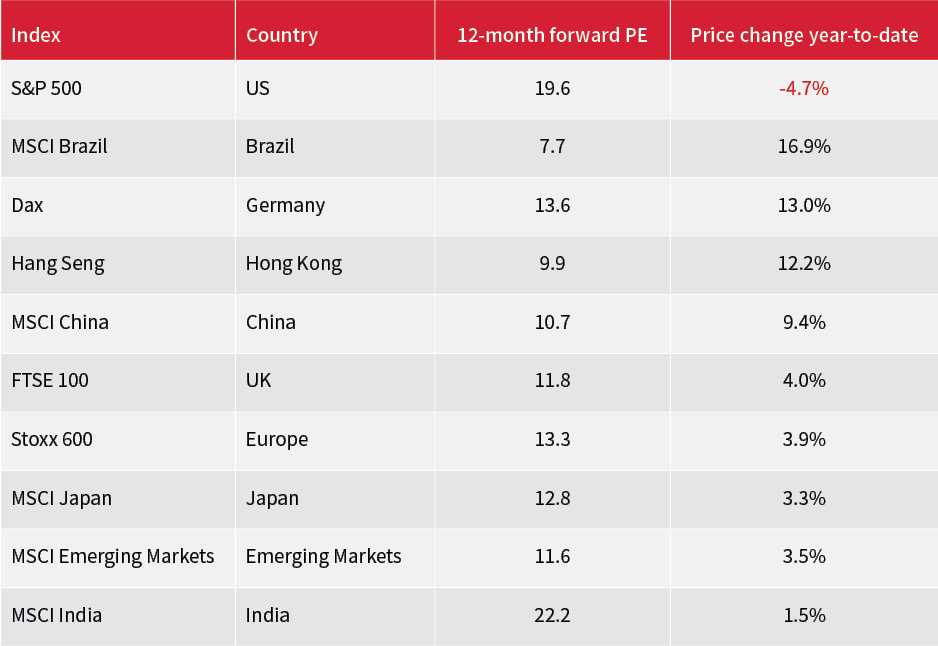 Source: AJ Bell, LSEG. Performance data 1 Jan 2025 to 2 May 2025 8am BST. PE data as of 30 April 2025