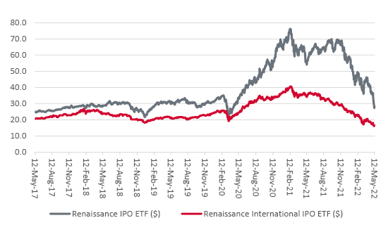 For markets to regain their momentum, the areas above need to stabilise and start to advance. Anyone looking for the next warning sign might perhaps look to another industry that has boomed but has turned a net seller, of itself, through stock market flotations – private equity. Petershill and Bridgepoint both floated in London in 2021. Neither share price has covered itself in glory. Those with long memories will recall how Blackstone’s New York listing was neatly timed – for the sellers – in 2007, just ahead of the smash. It took almost seven years to get back to its $31 flotation price (before then, in fairness, storming higher).