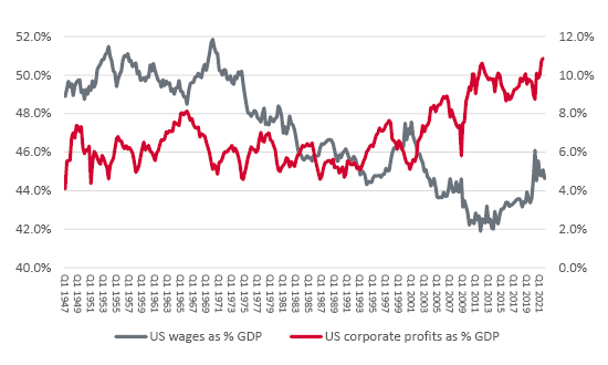• Will rising wages, alongside freight, raw materials and packaging, start to take a bite out of corporate profit margins? And, if so, what does that mean for equity valuations, especially at a time when interest rates are rising?