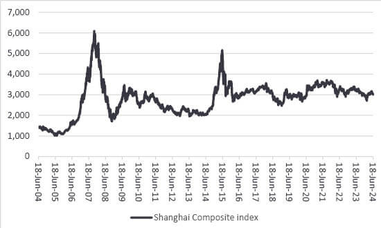 Yet for all of this phenomenal progress, the Chinese stock market has offered much less joy to shareholders and advisers and clients. The economy may have grown nearly fourteen-fold since the end of the last millennium, but the Shanghai Composite index is up by just 120% – a compound annual return on capital of just 3.5%, miles below GDP growth.