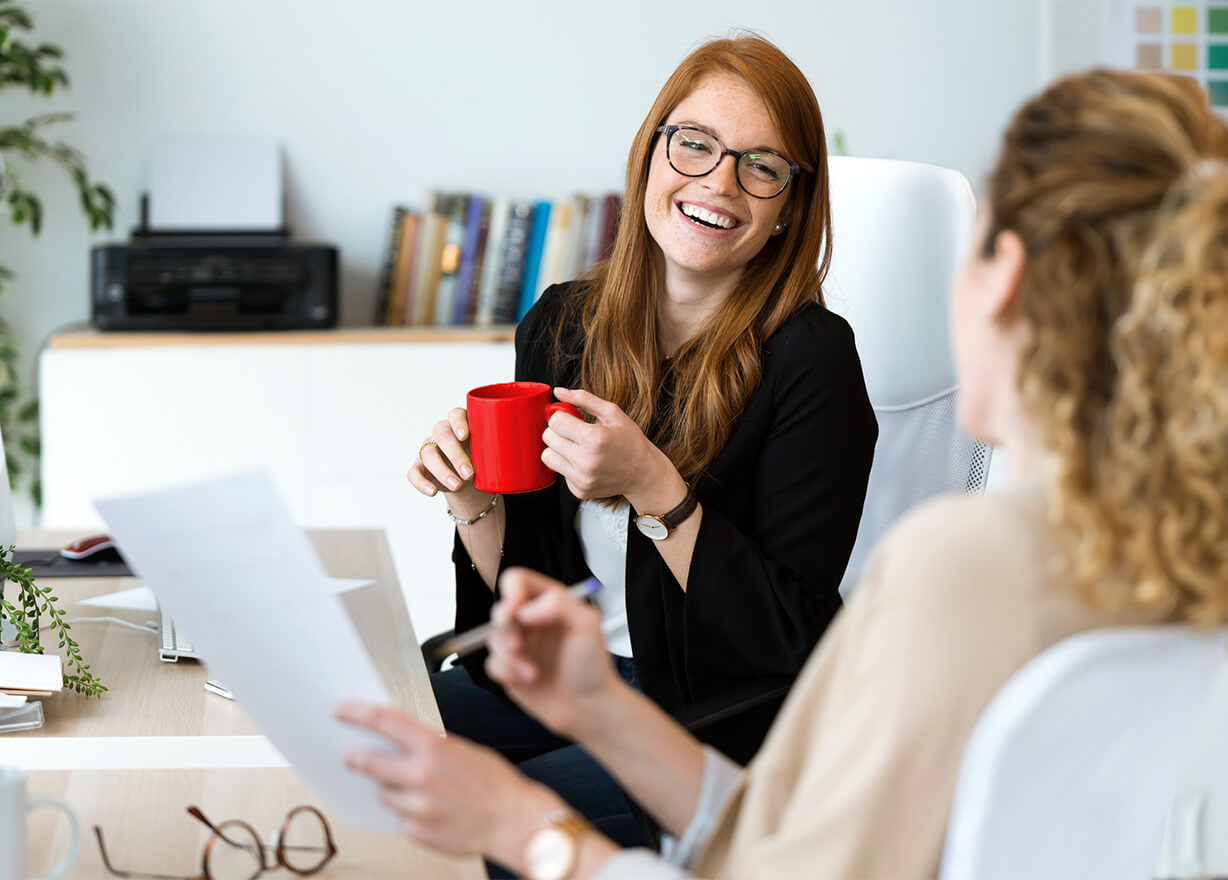 Lady speaking to adviser